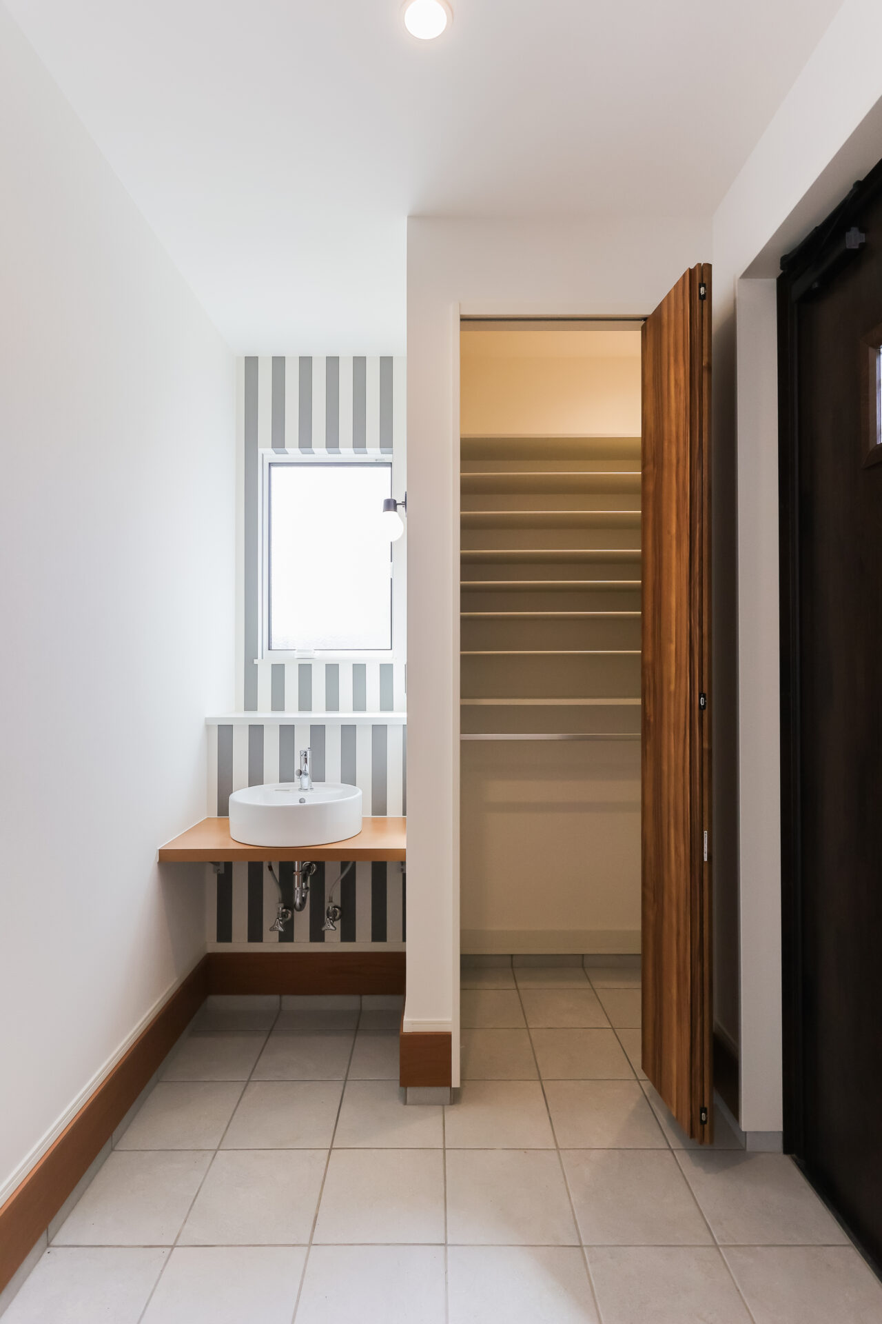玄関には手洗いを設置し、帰宅後すぐに手を洗う習慣が自然と身につく動線にしました。感染症対策としても有効ですし、子どもがいる家庭では特に便利な設備です。さらに、充実した土間収納により、靴やアウトドア用品、ベビーカーなどもすっきり片付けられます。
