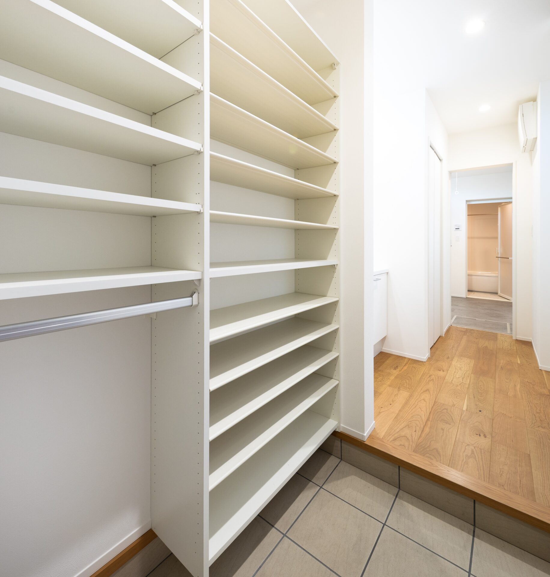 この施工事例では、玄関に手洗いスペースを設け、「ただいま」と同時に手洗いができる衛生的な動線を実現しています。外から帰ってきた瞬間に手を洗える配置は、感染症対策や花粉症対策としても効果的です。小さなお子さんがいる家庭では、手洗いの習慣を自然に身につけられるメリットもあります。