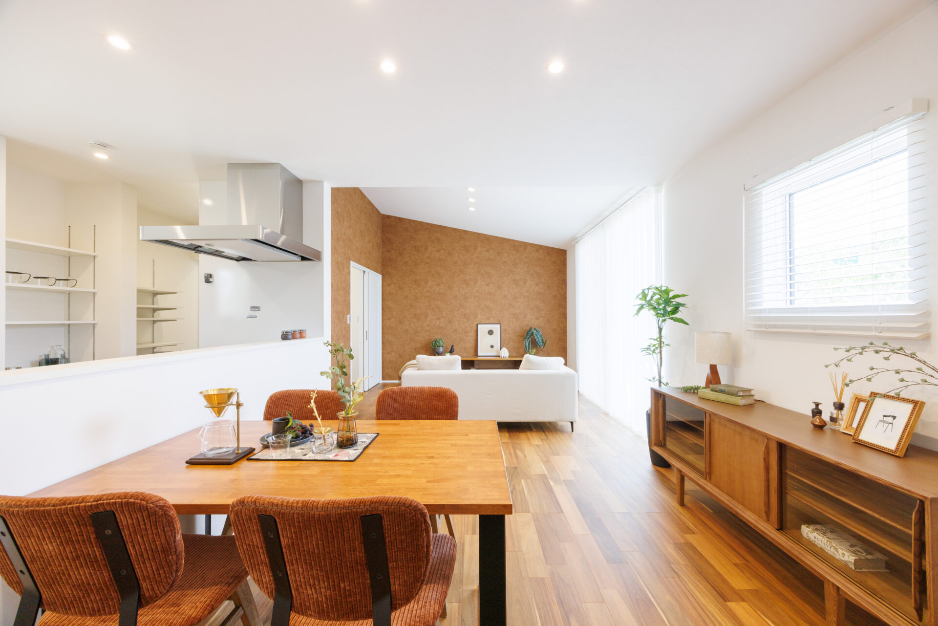 すべての部屋から庭やウッドデッキへ直接アクセスしやすく、自然を身近に感じる暮らしが可能です。中庭を設ければ、アウトドアリビングとして活用でき、限られた敷地でも広がりを感じられる住まいになるでしょう。