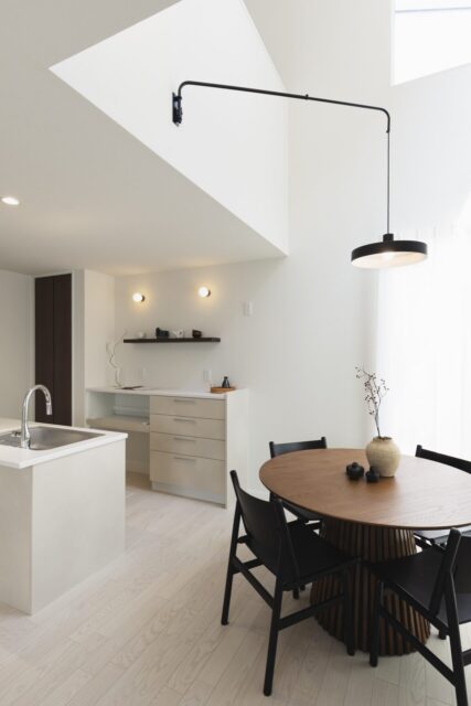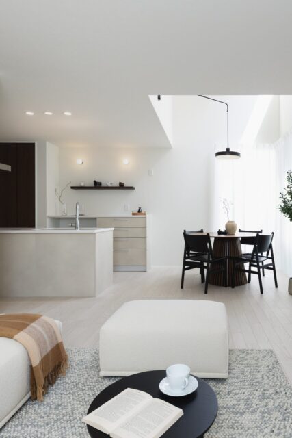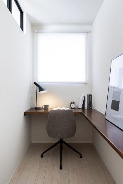 リビングの一角に書斎をレイアウト。適度な”こもり感”があり、在宅ワークや読書にも活用できます。自分時間をつくる、家族みんなの書斎です。 -