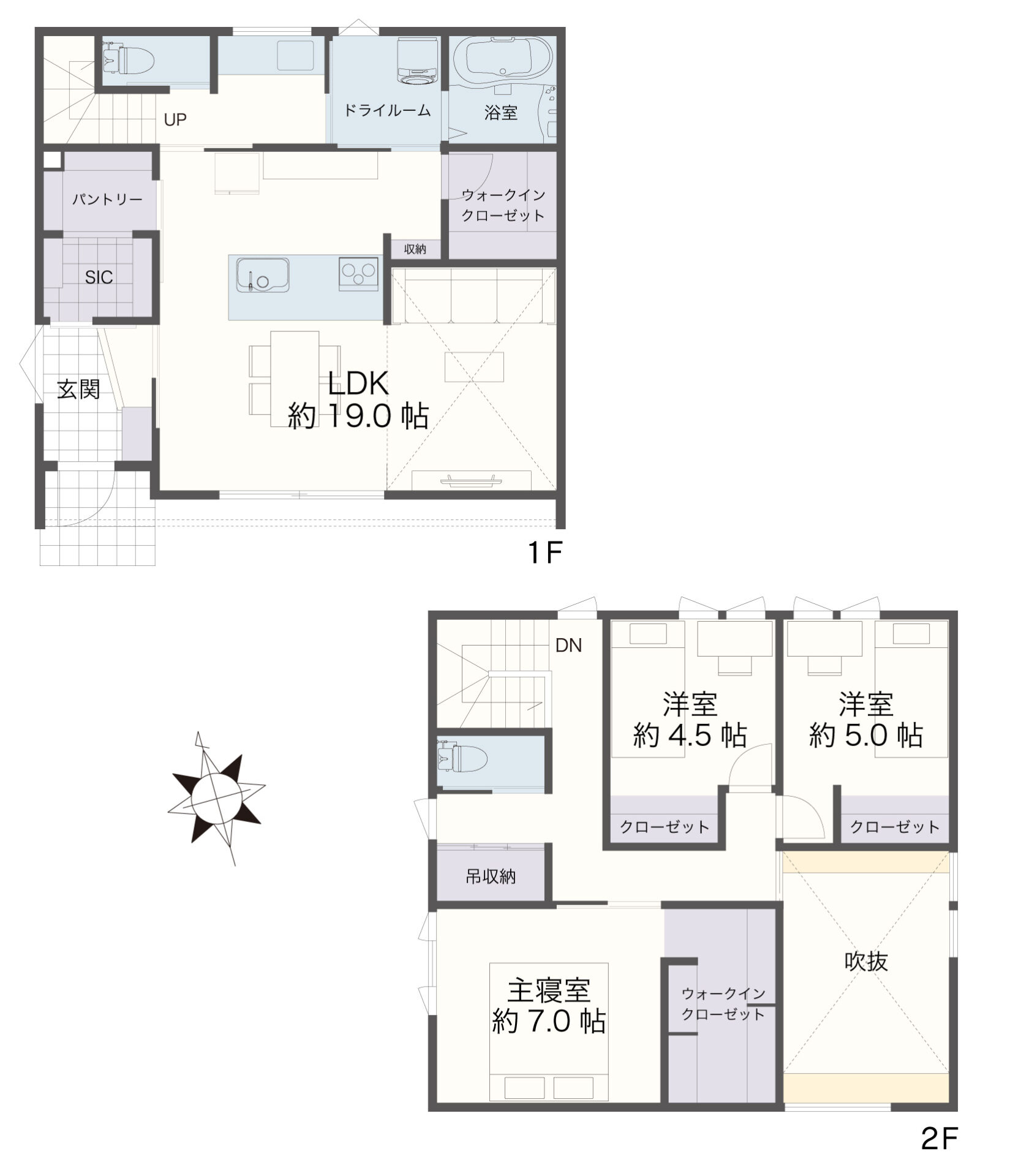 パントリーやシューズクローゼットに加え、各階にウォークインクローゼットを設けた充実の収納計画。ご家族のものはもちろん、ペット用品のストックもすっきり片付きます。
