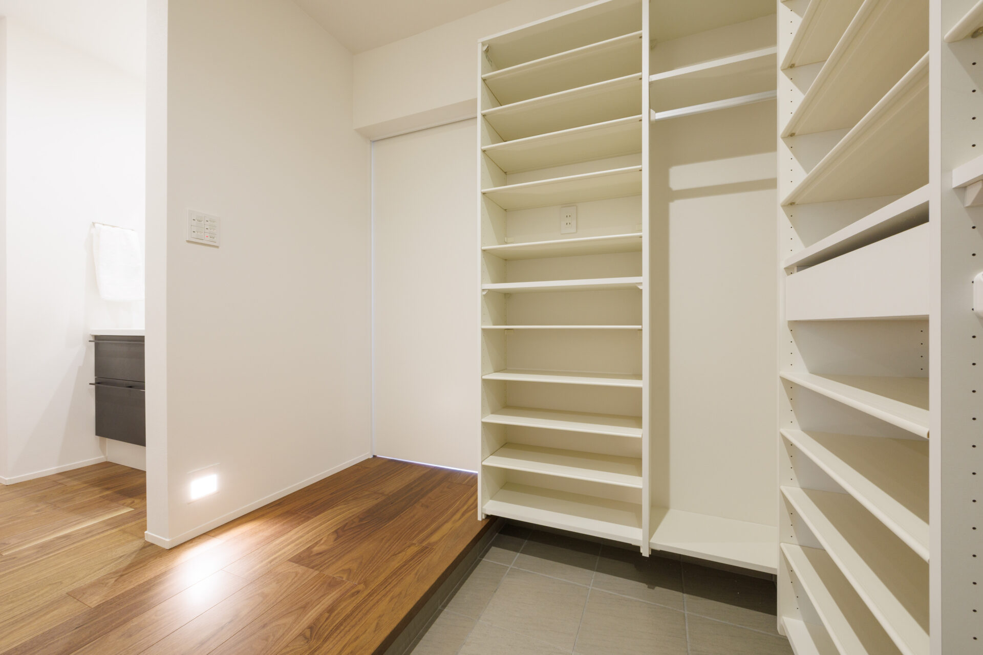 家族みんなの衣類や荷物をまとめて収納できる、大容量のファミリークローゼットを配置。日用品もすっきり収まり、住まいをきれいに保てます。