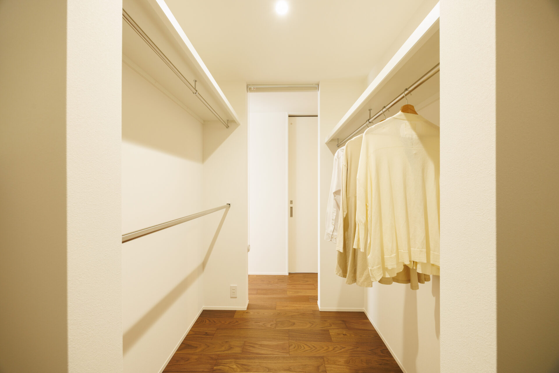 プライベートな居室とリビングの間にあるファミリークローゼットは2方向から出入りできる動線にすることで、日々の暮らしがスムーズになります。